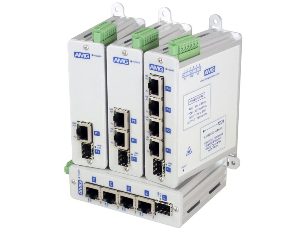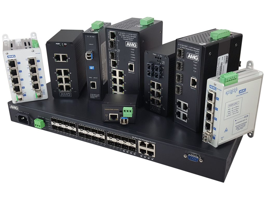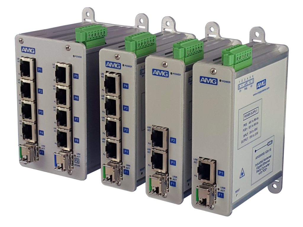 Available with 4; 8; 16 Gigabit Ethernet ports, AMG’s Unmanaged switches provide a Gigabit Ethernet uplink across fibre via the SFP port.